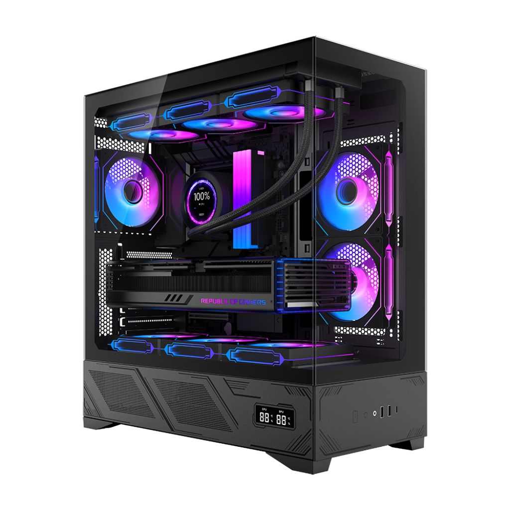 Boitier 220A10 de jeu PC AOJIE avec écran LCD, boîtier de jeu ATX de taille moyenne, boîtier de jeu Micro Desk, châssis de boîtier d'ordinateur en verre trempé