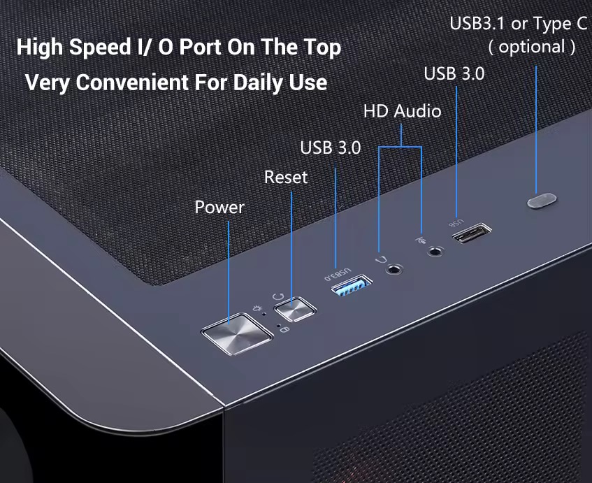 Boitier d'ordinateur PowerDealshop 2351 en verre trempé, nouveau design, boîtier PC ATX,