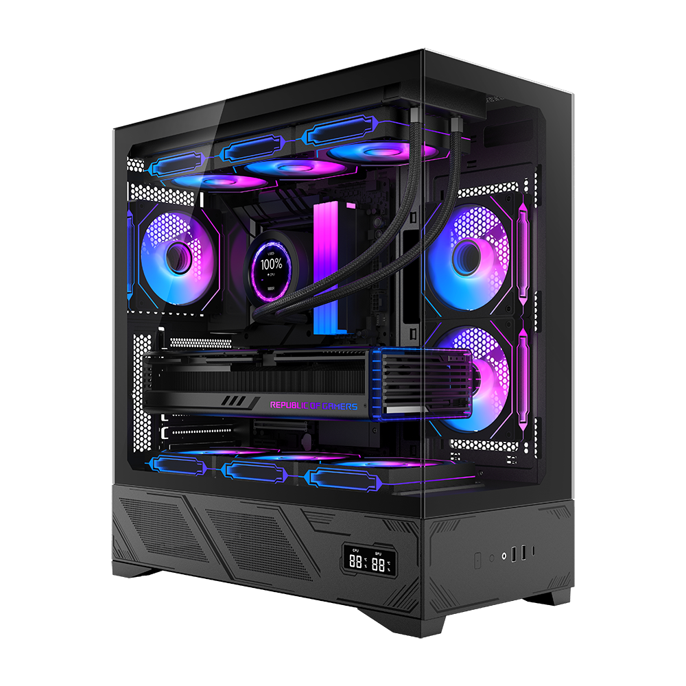 Boitier 220A10 de jeu PC AOJIE avec écran LCD, boîtier de jeu ATX de taille moyenne, boîtier de jeu Micro Desk, châssis de boîtier d'ordinateur en verre trempé