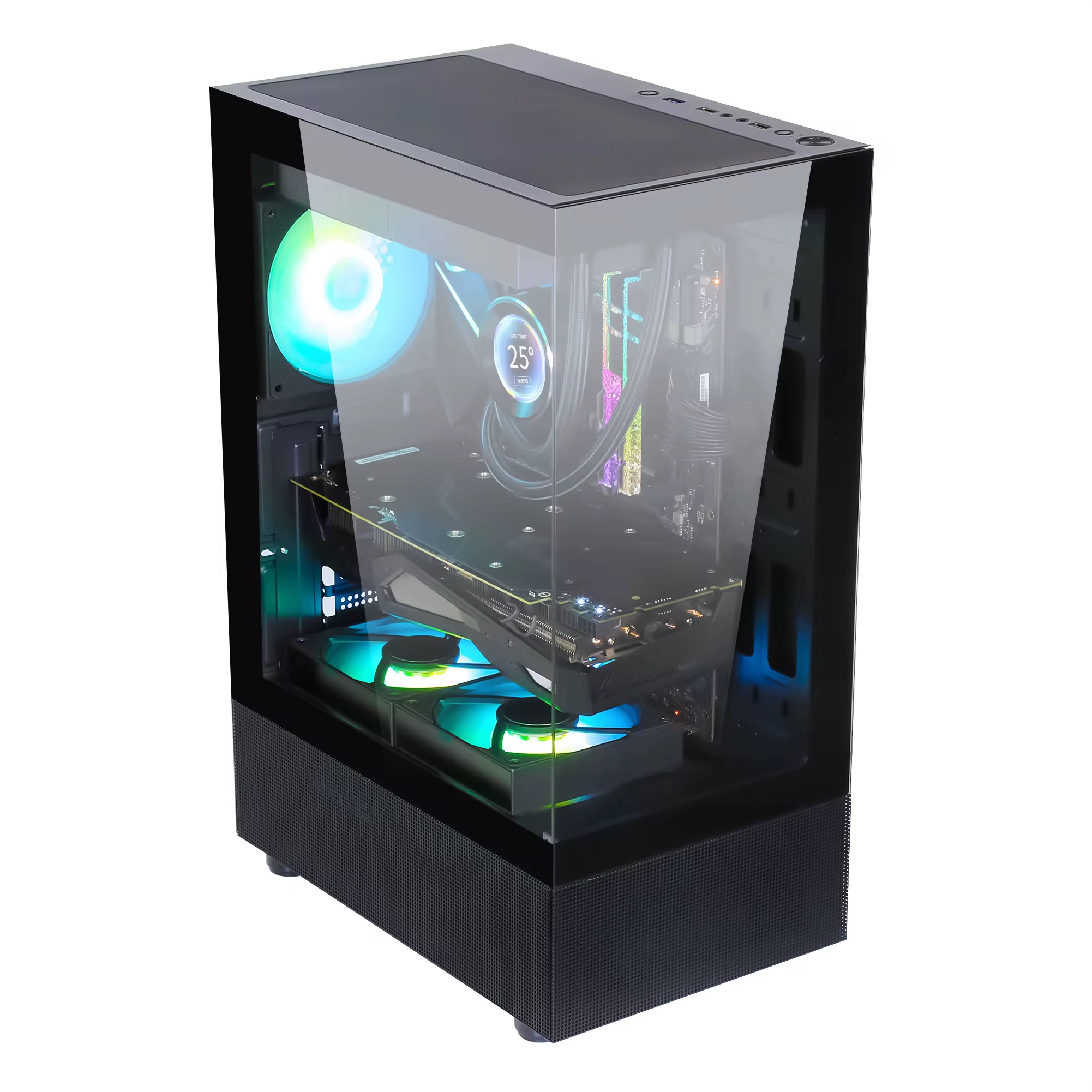 Boitier d'ordinateur PowerDealshop 2351 en verre trempé, nouveau design, boîtier PC ATX,